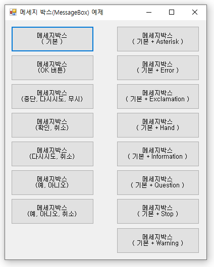 C# 메세지박스 15종 MessageBoxButtons, MessageBoxIcon